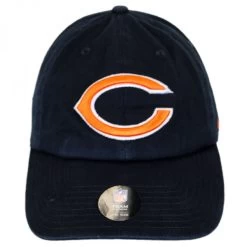 Garment washed for a broken-in look and feel, this navy blue low-crown relaxed baseball cap is constructed of quality cotton twill detailed with raised embroidery of the Chicago Bears NFL logo.