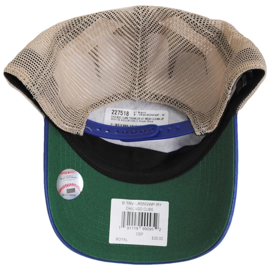 Featuring a soft classic 6-panel crown, 4 of which are mesh, the Chicago Cubs Trawler 47 Mesh Clean Up Baseball Cap is all about comfort and relaxation. The front 2 panels are made of 100% cotton with a twill finish, sewn eyelets and are adorned with an embroidered logo at the front. An embroidered ’47 Brand side hit, adjustable snapback, cotton twill sweatband and inseam taping complete this easy-going baseball cap.