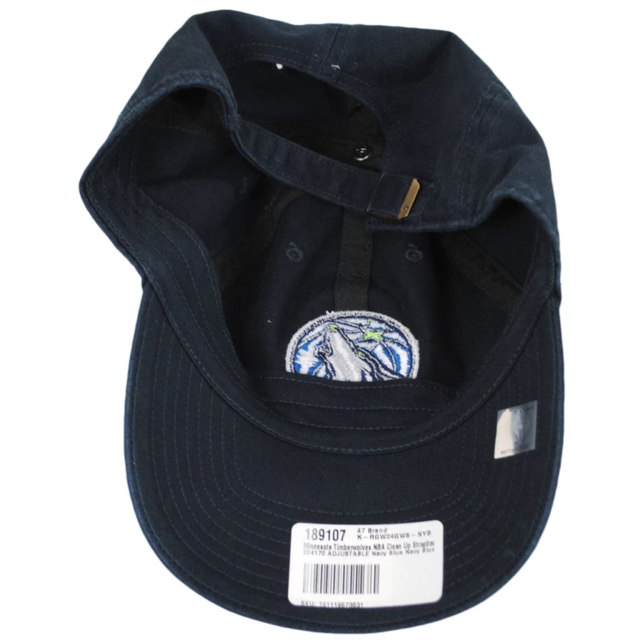 Featuring a soft classic 6-panel crown embroidered with the Minnesota Timberwolves’ NBA logo at the front, the Minnesota Timberwolves NBA Clean Up Strapback Baseball Cap by 47 Brand is uber comfortable and relaxed. Made with a soft, garment washed cotton twill finish and pre-curved bill/brim, this baseball cap has the casual, “dad hat/cap” style popular with both men and women. An embroidered ’47 Brand side hit, self-fabric adjustable strapback and team logo back tab complete the classic look of this easy-going baseball cap.