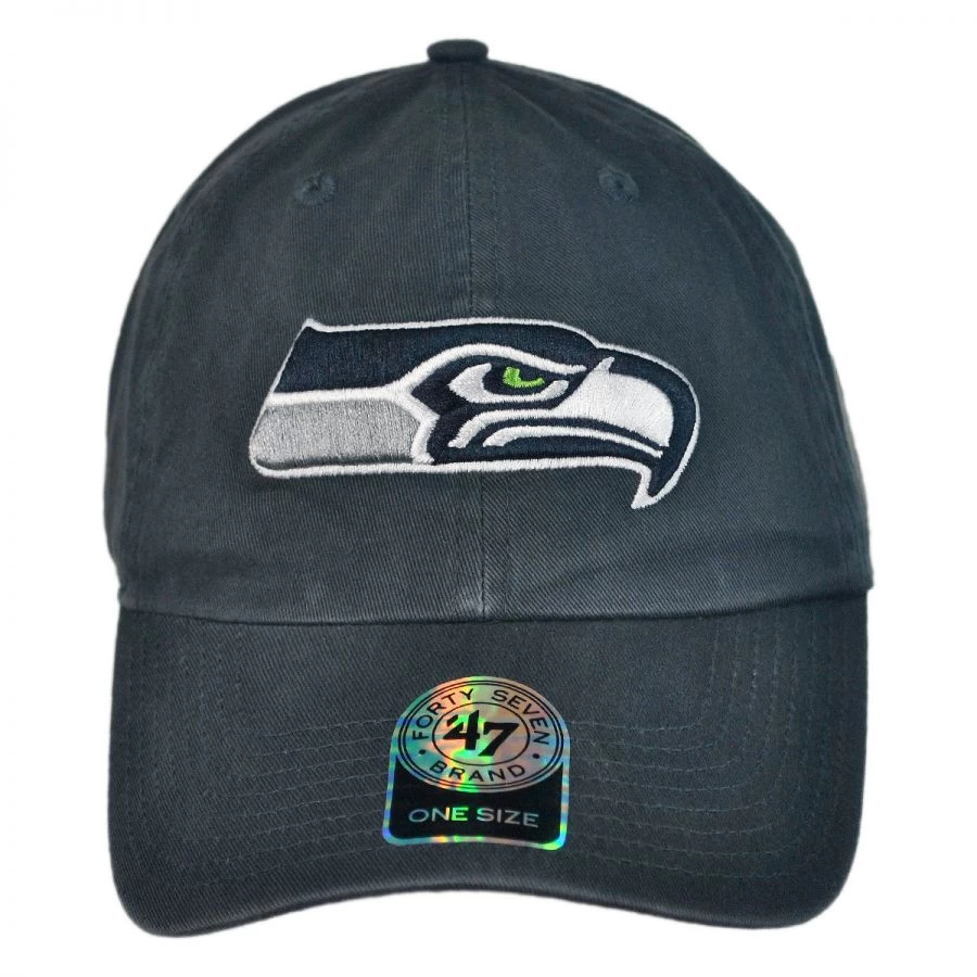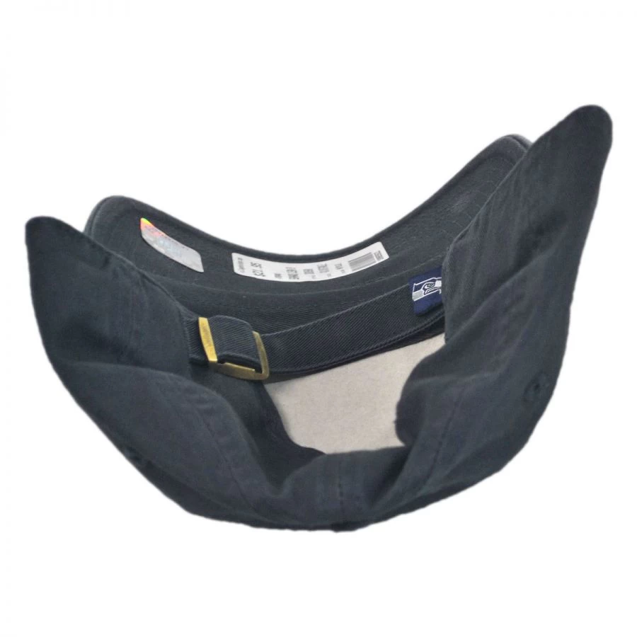 Garment washed for a broken-in look and feel, this navy blue low-crown relaxed baseball cap is constructed of quality cotton twill detailed with raised embroidery of the Seattle Seahawks NFL logo.
