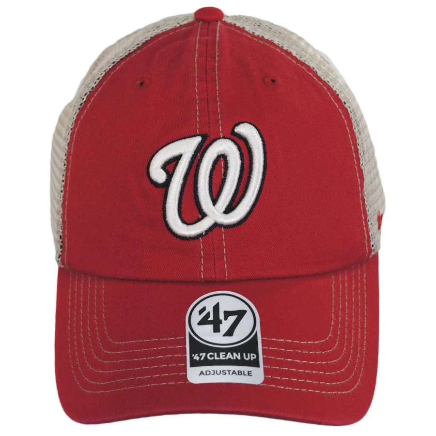 Featuring a soft classic 6-panel crown, 4 of which are mesh, the Washington Nationals Trawler 47 Mesh Clean Up Snapback Baseball Cap is all about comfort and relaxation. The front 2 panels are made of 100% cotton with a garment-washed twill finish, sewn eyelets and are adorned with an embroidered logo at the front. An embroidered ’47 Brand side hit, adjustable snapback, cotton twill sweatband and inseam taping complete this easy-going baseball cap.