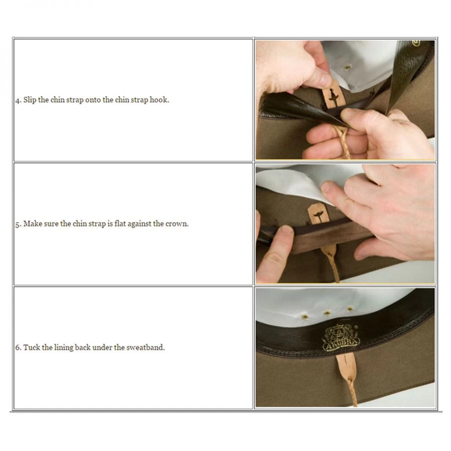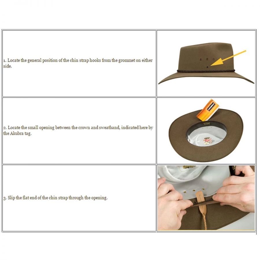 Please Note: This chin strap is only compatible with select Akubra styles (listed below). Please refer to instruction guide provided under the images tab for step-by-step instructions to attaching your Leather Chin Strap.