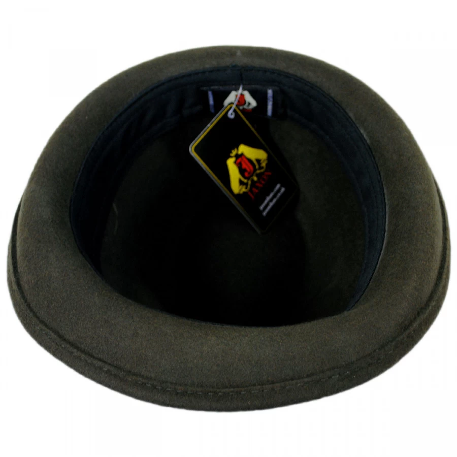 The Jaxon Alpine Fedora Hat is a great looking fedora at a great price! The beautiful moss colored wool felt fedora features the traditional corded hat band and a feather on the side as trim. The Alpine will keep you looking your best, especially in the Austrian Alps!