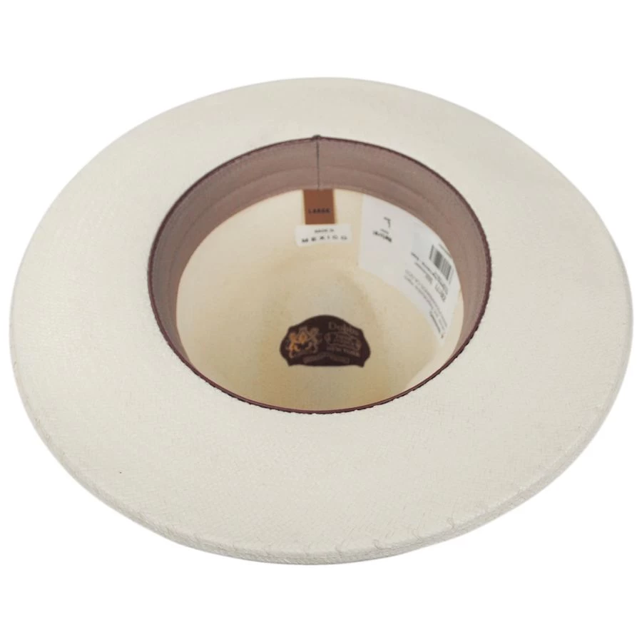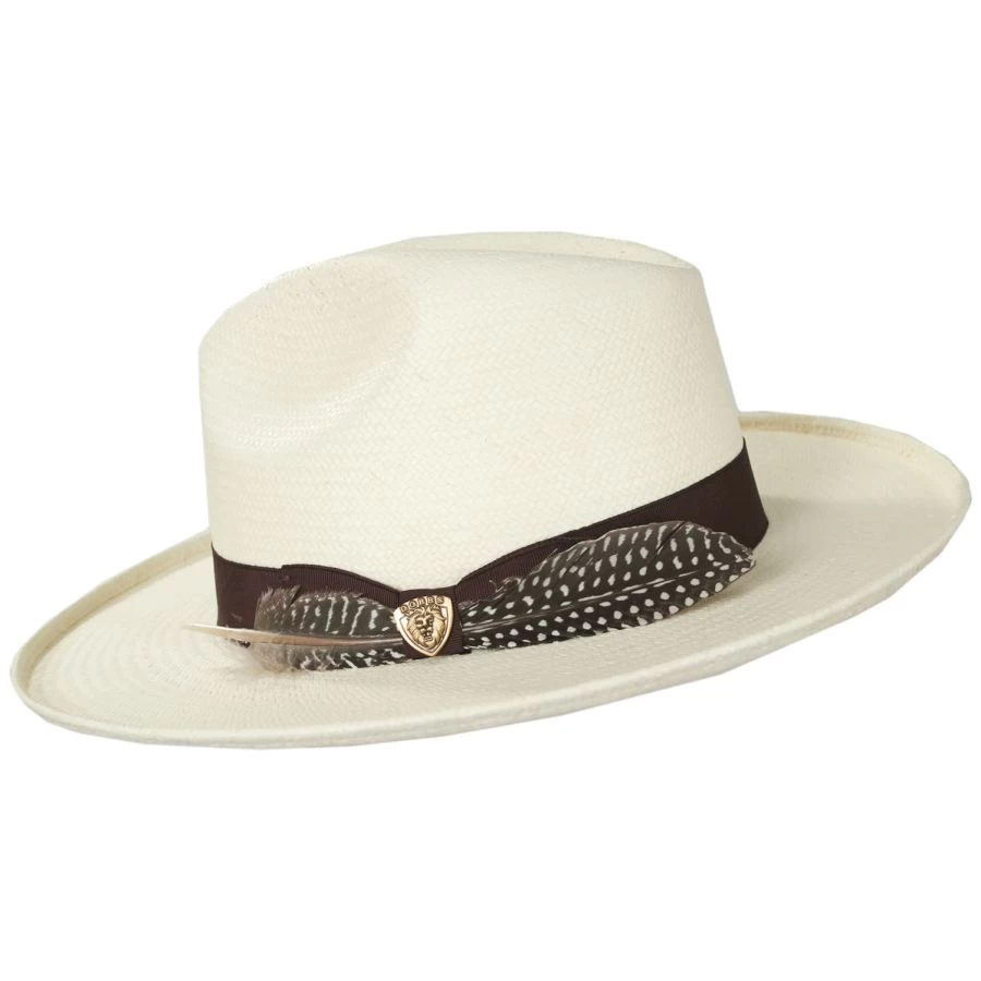 Dobbs’ Arlo Shantung Straw Fedora Hat is a stylish fedora, designed with an attractive pencil curl brim. The lightweight firm shantung straw body is adorned with a wide grosgrain ribbon hat band, feather accent piece, and Dobbs’ lion side pin. Thanks to these elements, the overall effect of the Arlo is definitely dressy.