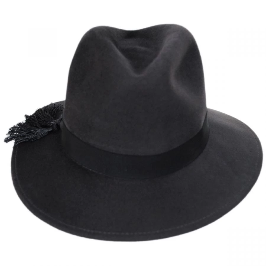 The Ashland Wool Fedora Hat from Betmar is the epitome of clean and stylish. The simple fedora design is accessorized with an official Betmar badge and attached tassel decor. This hat isn’t for just any situation, but you’ll always look sharp while wearing it.
