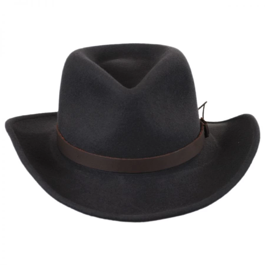 Part of Bailey’s Wind River® collection of rugged hats, the Caliber Crushable Wool LiteFelt Western Hat features their exclusive LiteFelt® finish for added softness, water repellency and packability. The Caliber is crafted with a classic teardrop crown, Outback/Aussie-inspired curved brim and trimmed with a sleek leather hat band complete with waxed cord tails. Buy the Caliber Wool LiteFelt Western Hat for its good looks, love it for its incredible durability and flexibility!
