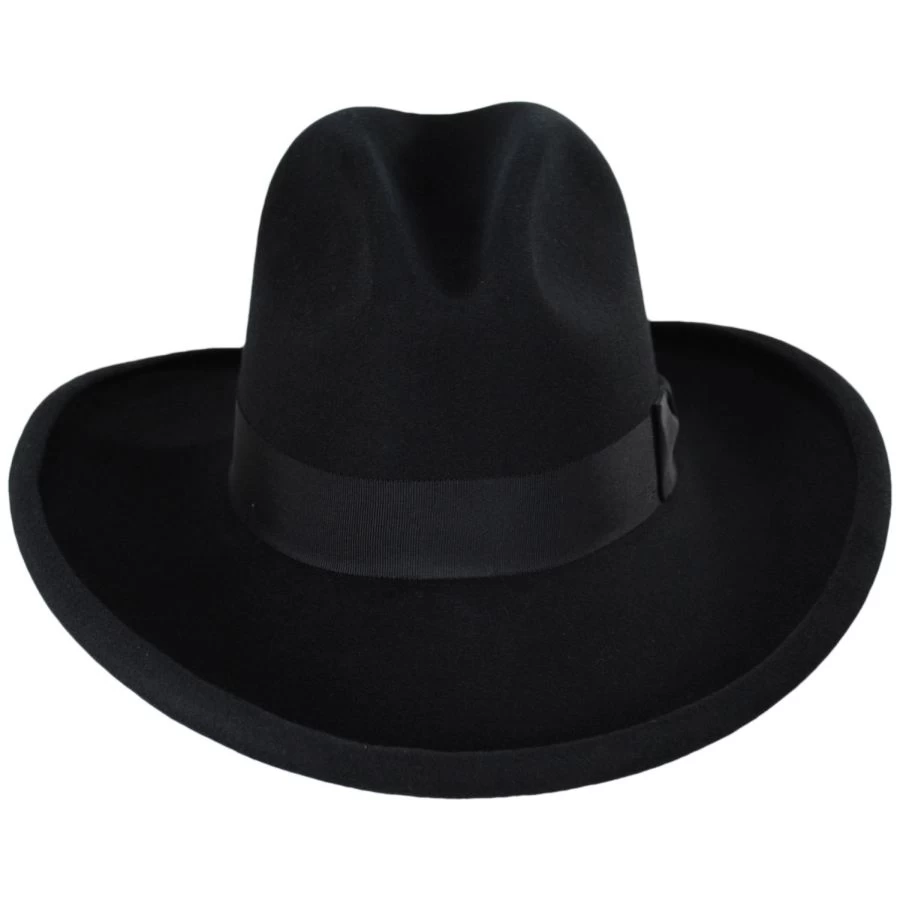 Made in the USA and part of their Frontier Collection, Bailey’s Clayton Wool and Fur Felt Blend Gus Western Hat is all quality and tradition. With a traditional gus crown, this stiff western also features an expertly crafted pencil rolled brim. The finest wool and angora fur felt produce the 4X blend, Bailey shows they aren’t ones to skimp on the details. The final touch is a classic black grosgrain ribbon hat band and bow.