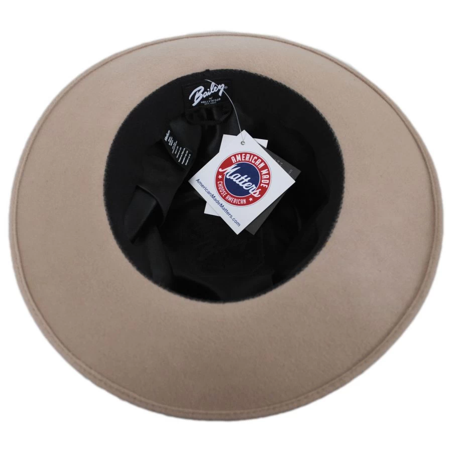 The Colby Elite Superfine Velour Wool Felt Fedora Hat by Bailey in their newest finish, the Wool Velour. Meant to mimic fur felt, this ultimate finish has a sustainable purpose. The narrow pebbled leather hat band with a thick topstitch throughout gives rugged vibes. A knotted crosspiece holds a removable feather accent. The interior is satin lined with a flexible sweatband.