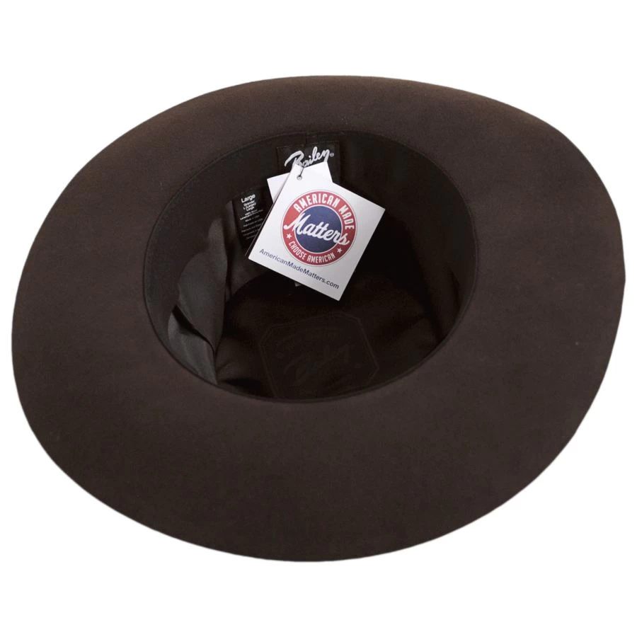 The Lang Elite Wool Felt Gambler Hat has a distinct teardrop crown, a mix of a telescope crown with a soft point. Bailey 1922 creates the elite finish with fine 16 micron sheep’s wool, that undergoes carding and wet felting, twice. Proprietary sanding and hand finishing results in the a luxurious wool felt finish. The Lang Elite Wool Felt Gambler Hat is then treated with a ‘hand-cooked’ shellac for the heritage stiffened touch. No detail has been overlooked on the Bailey 1922 Lang Elite Wool Felt Gambler Hat.