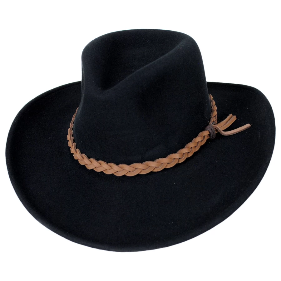 The Switchback is a classic Wind River® by Bailey western style. Made in the USA of their exclusive wool LiteFelt® that is both packable/crushable and water repellent, the Switchback features a braided leather hat band and curved brim for a timeless Aussie/western look. Their patented Dri-Lex® sweatband is absorbent and quick-drying for incredible all day comfort.Â