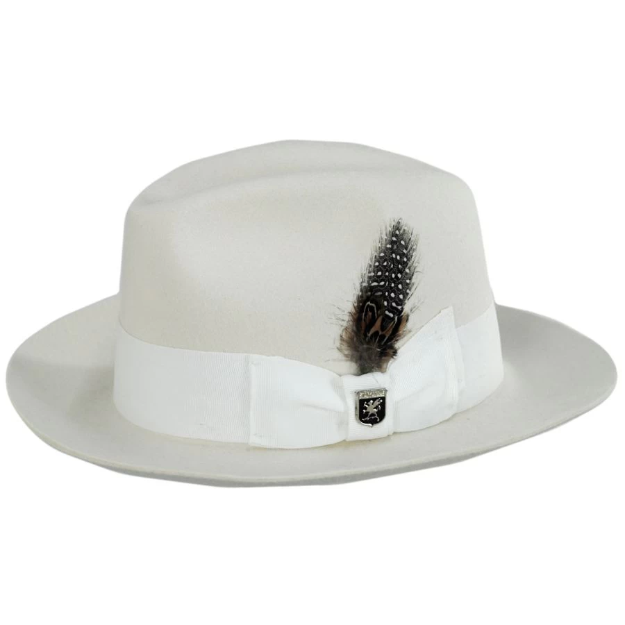 Introducing the Cannery Row Wool Felt Fedora Hat by Stacy Adams. This is a great classic style fedora that will be your favorite for years to come. A traditional silhouette that conjures up characters of film noir or pulp fiction, mystery and suspense will be at the ready with the Stacy Adams Canner Row Wool Felt Fedora Hat.