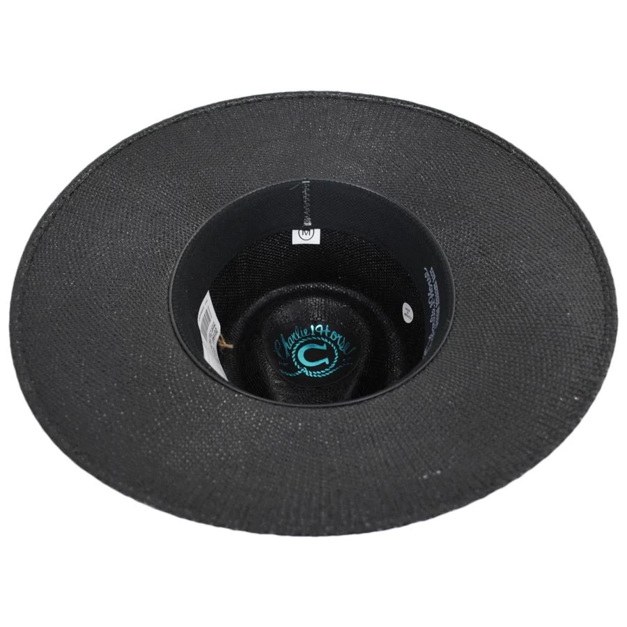 CHARLIE 1 HORSE Midnight Toker Shantung Straw Wide Brim Fedora Hat