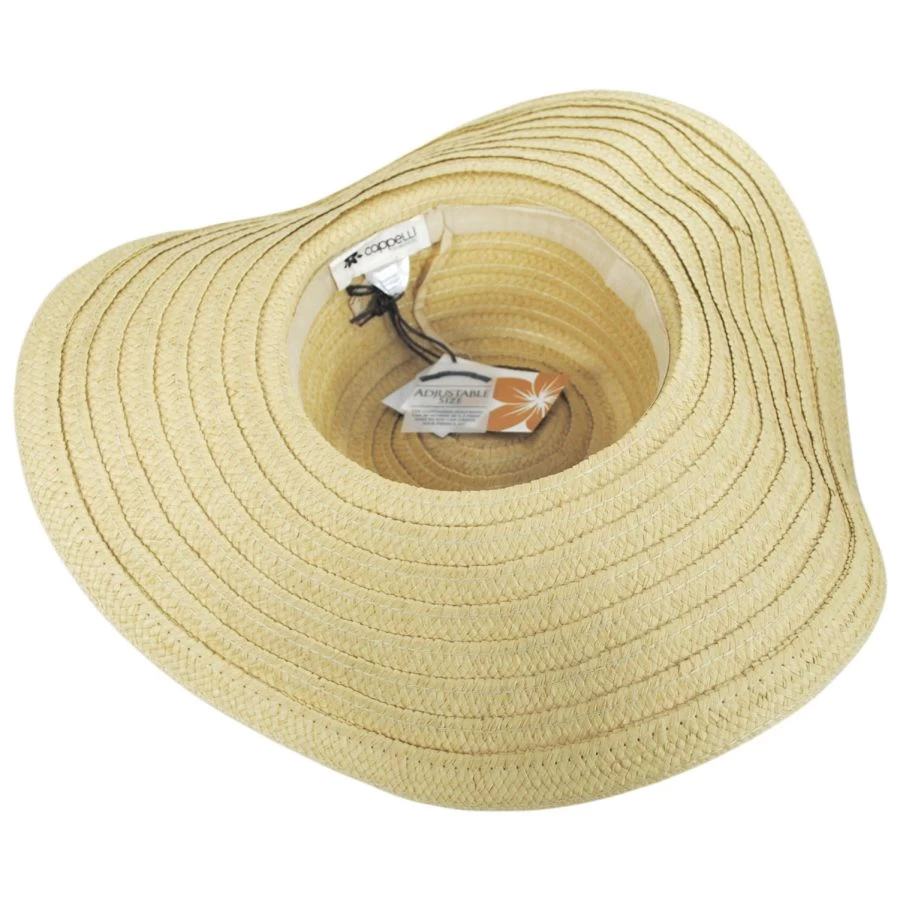 Cappelli Straworld’s Dover Braided Toyo Straw Sun Hat is the sun hat of your beach day dreams! Featuring a wax cord and faux leather layered hat band adorned with shells and faux turquoise beads. The body is a braided toyo straw with an extra wide floppy brim. The boho vibes just don’t quit!