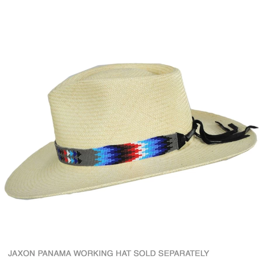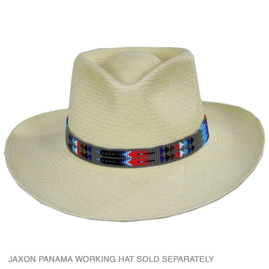 Crafted of colorful beads in traditional patterns, the Feather and Arrow Beaded Hat Band by SunBody Hats adds color and interest to your favorite hats. Attractive and simple to use, the Feather and Arrow Beaded Hat Band can be easily placed around the crown of your hat and fastened using its genuine leather end ties.