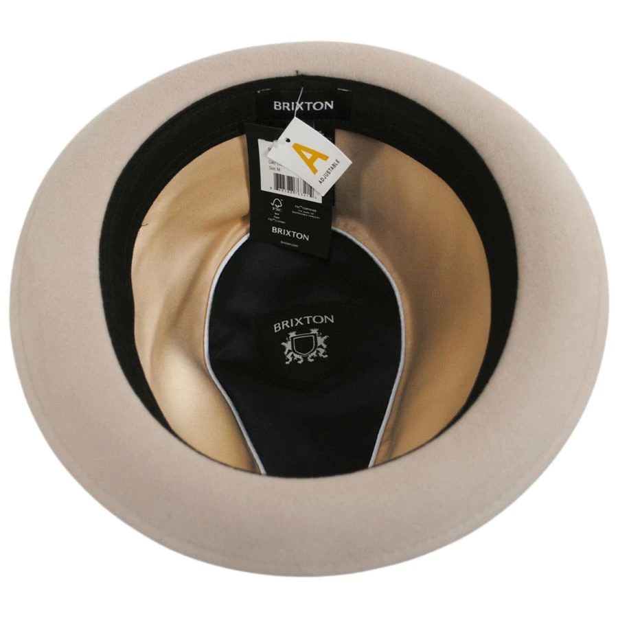 Gain both style and confidence with the Gain Wool Felt Fedora Hat from Brixton! A soft wool felt fedora body designed with center pinch crown, trimmed with a sleek grosgrain ribbon hat band and a stingy snap brim. This fedora will get you through any season in total style!