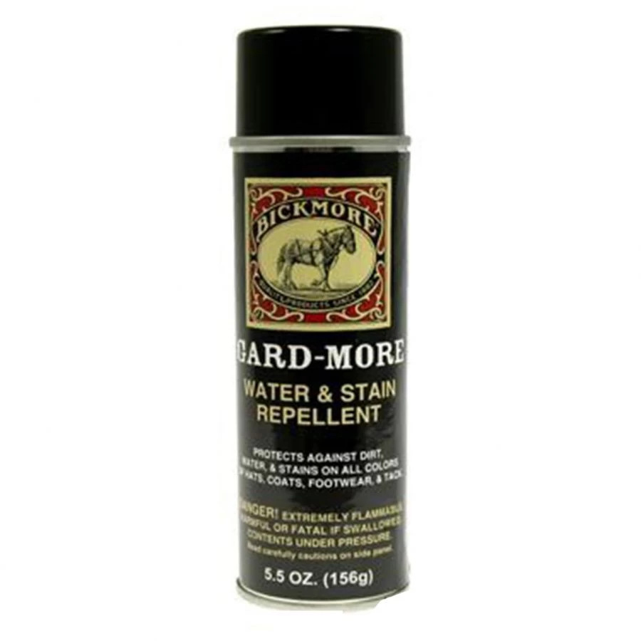 Effective on a variety of items such as hats, jackets, boots, saddles and materials such as suede, smooth leather and fabric, Bickmore’s Gard-More Water & Stain Repellent Aerosol Spray helps prevent damage from perspiration, rain and even grease stains. Gard-More features a light spray that dries quickly and will not change the color, tone or texture of your hat. It protects against scuffing and rub off, so it can be used on other items in your wardrobe. The repellent features no silicone which will not seal pore structure allowing leather, suede and fabric to breathe.