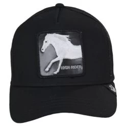 No one can tame you in the Stallion Mesh Trucker Snapback Baseball Cap from Goorin Bros, you’ll be in style all season! The mesh back panels and buckram-supported front panels create a classic snapback design, and emphasize comfort like no other. Plus, the patch on the front of the cap allows you to show that you’re a real animal!