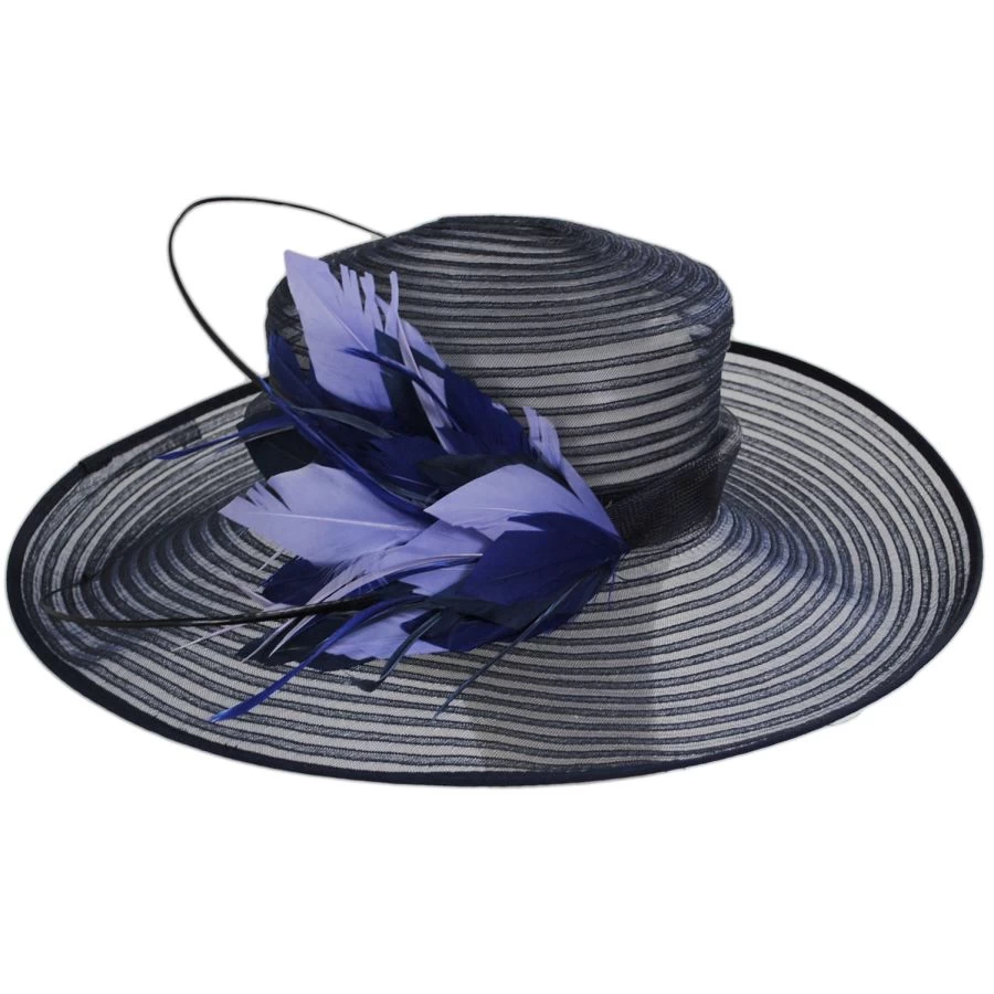 Giovannio’s Grace Horsehair and Feathers Dress Hat is all about the details. An elegant feather and quill arrangement is the star of the show. Other details include a horsehair hat band, square horsehair crown, flexible asymmetrical horsehair brim and grosgrain ribbon binding on the brim.