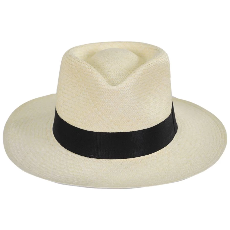 The Grade 10 Panama Straw C-Crown Fedora Hat by Hats Montecristi is a great casual panama. This handwoven hat is a grade 10 which denotes a fine weave giving it a flexible, soft and supple feel. Features a grosgrain ribbon hat band, teardrop crown and slightly upturned brim. This hat is effortless and will go with just about anything!
