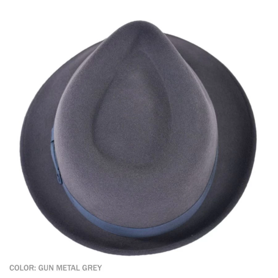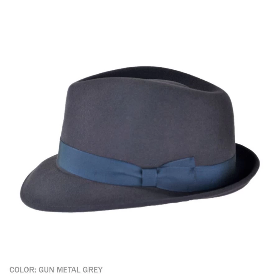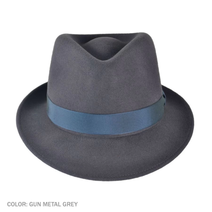 The 2000s Wool Felt Trilby Fedora Hat is one of the most common hats for women to wear that combines male and female fashion. Bollman 2000’s Trilby comes complete with a stingy brim and is dressed in a blue grosgrain ribbon hat band along with a simple bow. Featuring a teardrop crown with a dimensional brim that dips in front, this stylish trilby’s underwelt brim is shorter on the sides and turned up in the back.