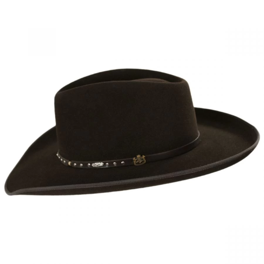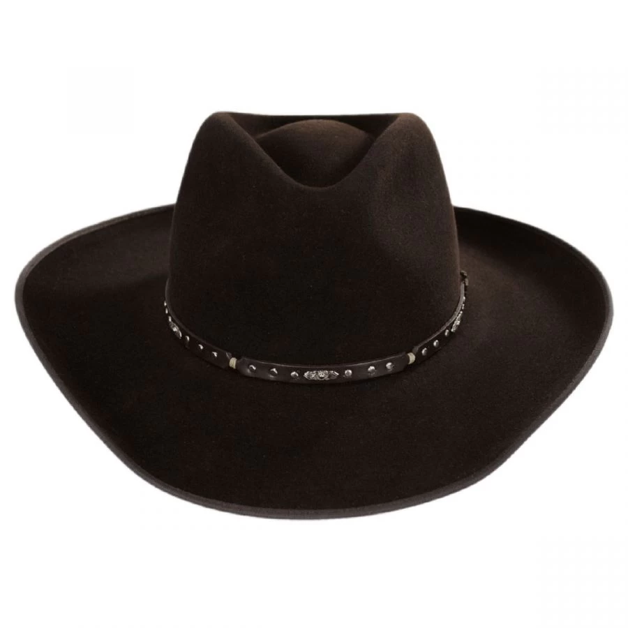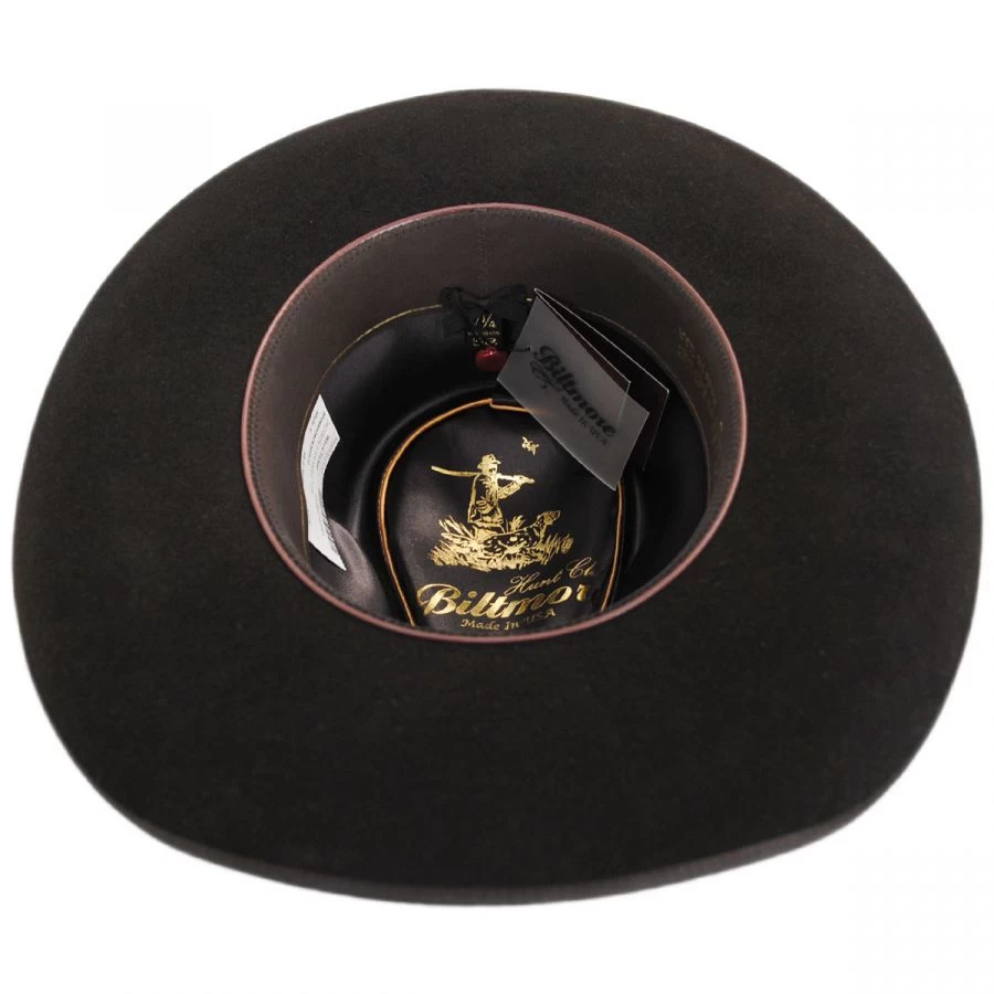 New from Biltmore’s Hunt Club line of headwear, the Jackson 6X Fur Felt Crossover Hat is all about the handmade details! A hand-curled brim gives this hat its distinctive shape while the fur felt has been polished and sanded for a smooth feel that is unbeatable. Made in the USA, the Jackson is water resistant and features a genuine leather hat band with metal accents and studs, a grosgrain ribbon binding on the brim, a suede sweatband and a satin lining.