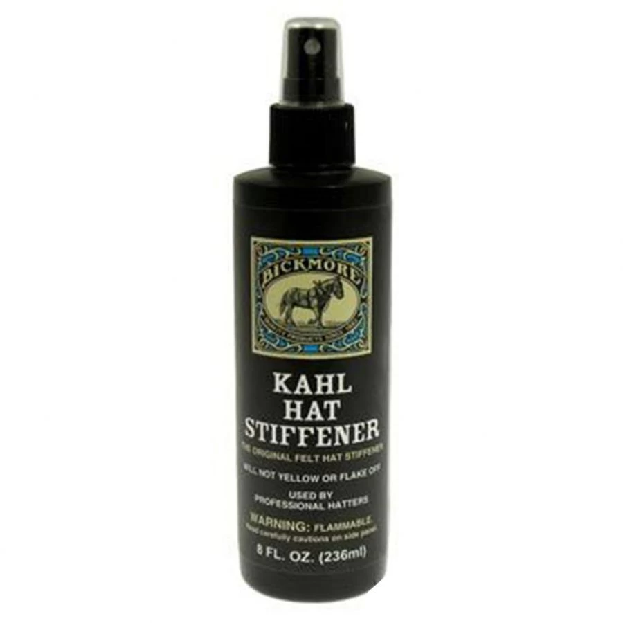 Bickmore’s Kahl Hat Stiffener is a special blend of stiffening agents formulated specifically to add the original body and stiffness back to felt hats. Proudly manufactured in the USA, Bickmore’s Kahl Hat Stiffener outperforms all other hat stiffeners both in terms of its stiffening ability and gentleness to the tone and texture of the felt.  Kahl Hat Stiffener will not affect the tone, texture or color of the hat. It will not turn yellow or flake off. Kahls Hat Stiffener will not affect future hat cleanings, shaping, or reblocking if used properly.