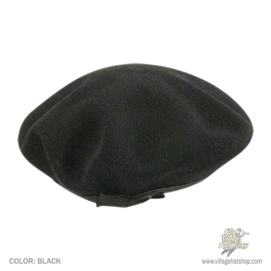 Kangol has transformed the Monty, named in honor of Field Marshal Montgomery, military beret into a summer weight version by using their Tropic fabric. Two black 1/4″ diameter grommets are located on the left side of the hat, right above the logo. The black patent leather binding encases a nylon web band that ends in a bow that is used to size the beret.