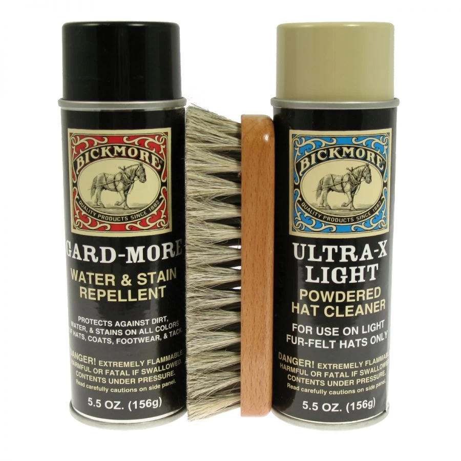 The Bickmore Light Felt Hat Care Kit is the convenient all-in-one care kit for light colored fur felt hats. A must-have for hat aficionados everywhere, the Light Felt Hat Care Kit includes Bickmore’s Ultra-X Light Hat Cleaner and light hat brush to effectively remove dirt and stains from your favorite light felt hats. Also included is their famous Gard-More protective spray to help prevent future stains and water damage.