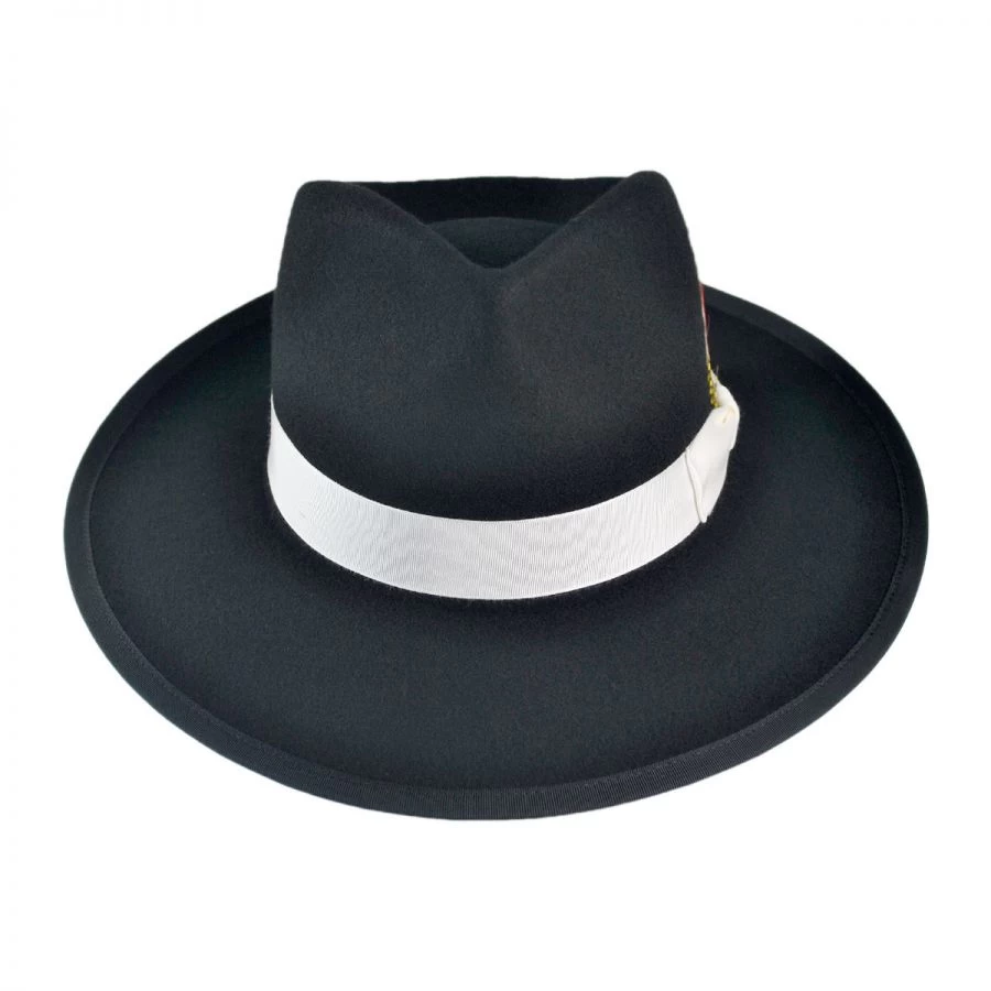 Who can forget Cab Calloway and his jive-dancing, scat-singing, zoot-suit wearing performances? It was Harlem and Los Angeles, Memphis and Detroit in the 1940’s. Jazz and swing were rocking the country, and the hippest guys in town were wearing this new style fedora – wide brim snapped down with a contrasting ribbon hat band – a Zoot Fedora. So with or without your Zoot suit, sport that Jaxon Zoot Fedora Hat and you’ll be stylin’.