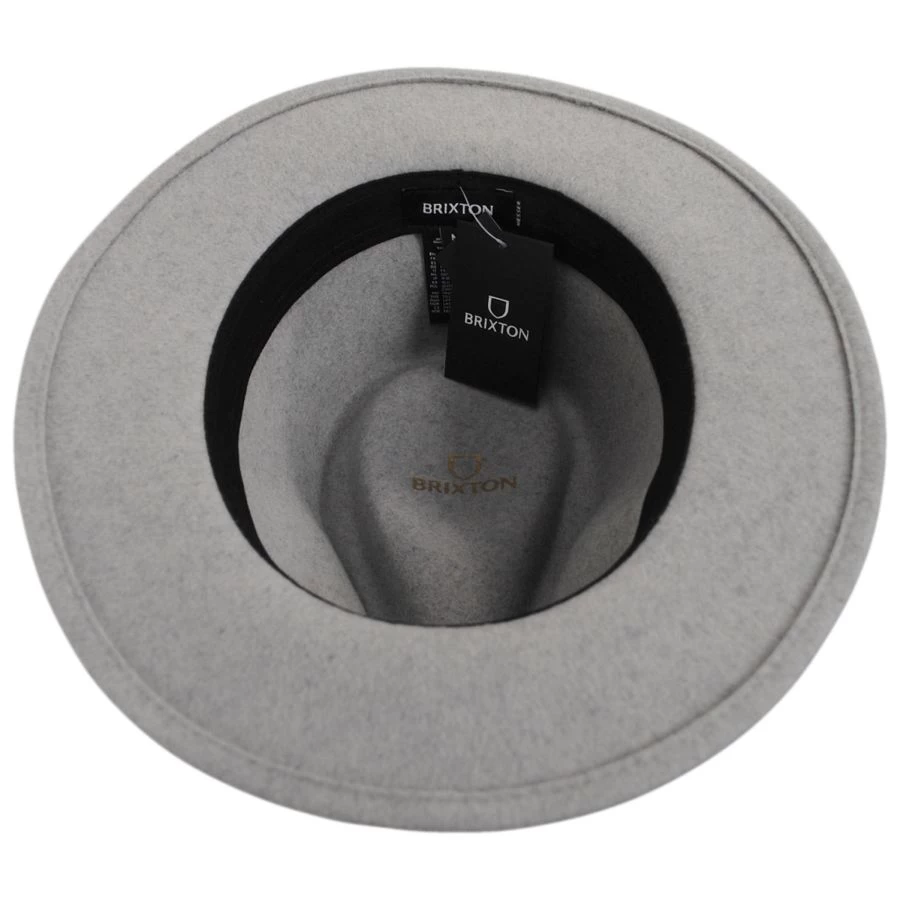 The Messer Melange Wool Felt Fedora Hat from Brixton Hats is a safari-inspired fedora. With a touch of ruggedness added to a classic fedora design, the Messer has an understated faux leather band to complete this iconic look. Versatile enough to wear on a hike or a more formal event as well. This is an example of exemplary headwear for any time of the day.
