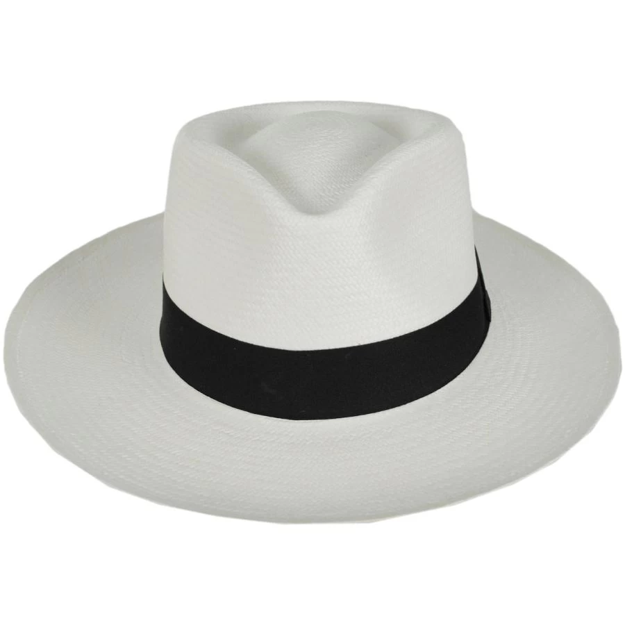The Panama Straw Grade, 10 C-Crown Fedora Hat by Hats Montecristi is an effortless hat that will go with anything. This handwoven hat is grade 10, which represents a fine weave giving it a flexible, soft, and supple feel. It features a grosgrain ribbon hat band, teardrop crown, and slightly upturned brim.