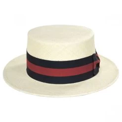 Capas Headwear is giving us turn of the 20th Century vibes with the Panama Straw Skimmer Hat. Reminiscent of the classic skimmer, this hat features a stiff flat crown and brim with a striped red and blue grosgrain ribbon accent. Skimmer hats, also called boaters, were a staple summer headgear, especially for boating or sailing. Now, they are often associated with barbershop quartets and jazz bands. We’ll tip our hats to that!
