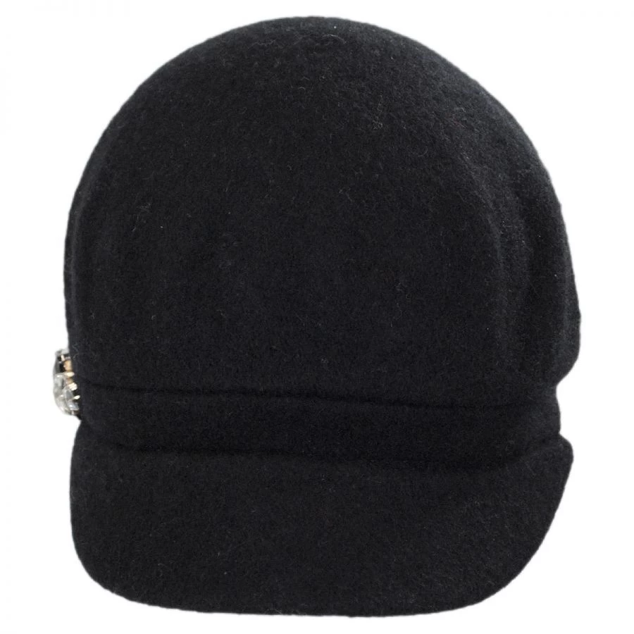 Introducing the Rhinestone Wool Cap by Betmar. This is the perfect choice for someone wanting to stay fashionable throughout the winter season. It is lightweight, packable, crushable, and will still keep you warm.