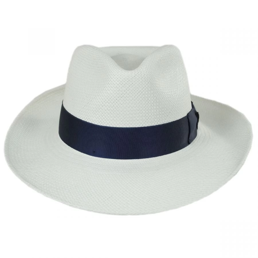 Look sharp with the Santorini Panama Straw Fedora Hat from Bigalli. This stunning fedora is made in Ecuador, and features a grosgrain ribbon hat band wrapping around the crown, complete with a nice bow and Bigalli metal side pin. Additionally, the padded cotton sweatband is comfortable, ensuring a perfect fit!