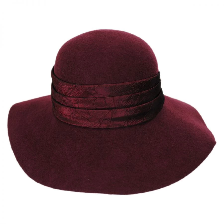 Elegant and sophisticated, the Satin Brooch Wool Floppy Hat by Toucan is a breathtaking down brim style. Featuring a tonal pleated satin hat band, this style is finished with a beautiful antique-inspired brooch at the side. Its soft and packable wool felt design gives the raw edge brim a flirty “floppy” quality and allows the hat to easily pack for storage or travel.