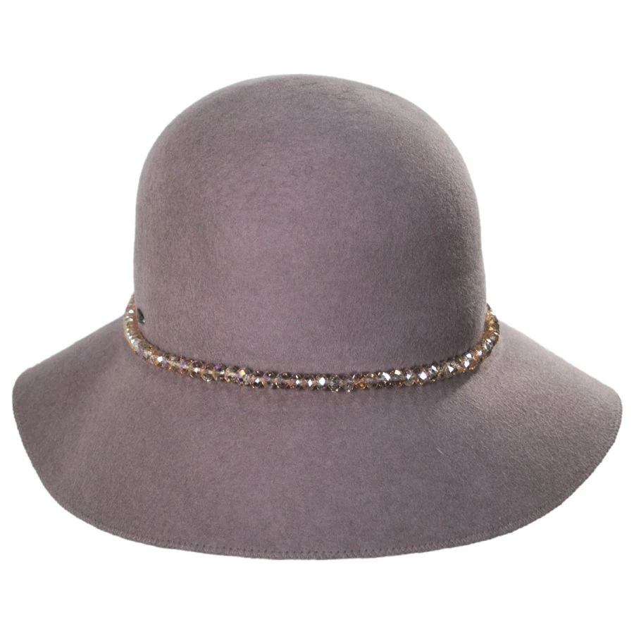 Crank up the the record player and pop on your Alessandria Wool Felt Cloche Hat by Scala, it’s time to Charleston! This ’20s styled cloche hat features a round crown, downward brim and a iridescent beaded satin ribbon hat band. The Alessandria is made of soft and completely packable wool felt. Bring the cloche into the 20th century with the Alessandria cloche by Scala.