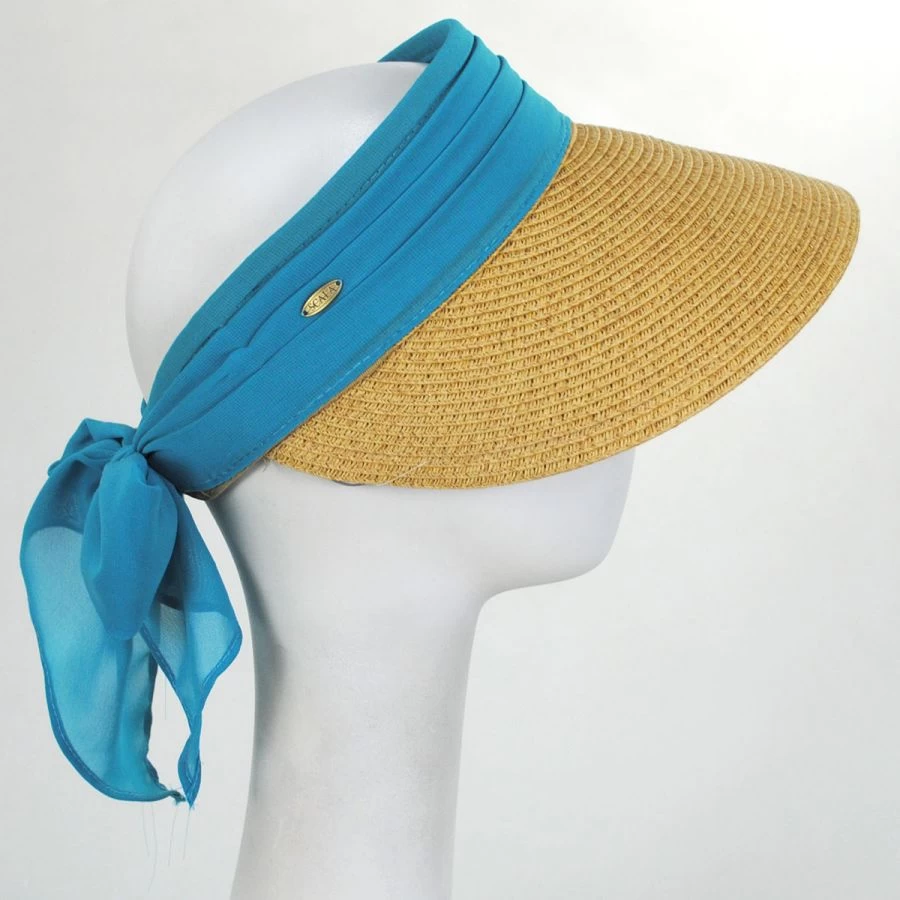 This summer, Scala wants you to take it easy, and that’s why they’re unveiling the Elena Chiffon Toyo Straw Visor! This gorgeous visor is so stunning, thanks to the chiffon hat band wrapping around the open crown, tied with a bow. Additionally, you’ll be comfortable wearing this visor, thanks to the grosgrain ribbon sweatband on the interior of the open crown.