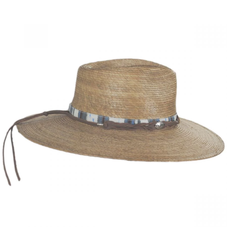 Made with COOLMAX® CORE technology, the Laeila Palm Straw Fedora Hat by Scala will keep you cool and dry will looking effortlessly chic. An Aztec-inspired band with suede overlay is adorned with conchos and ends with attractive tails tied at the back. The Laeila was made in Mexico and features palm straw that has been finished in a semi-stiff body. The interior is unlined and has an elasticized terrycloth COOLMAX® CORE technology sweatband.
