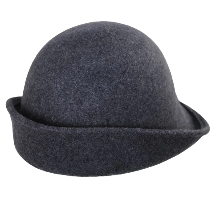 The Six Way Wool Felt Hat by Toucan Collection is so simple and chic, stripping everything back to celebrate the classic cloche style of the 1920s. The classic bell shape shines with no adornments to disrupt the seamless flow from crown to brim, also making it easy to wear this hat different ways. Comes with a ‘six ways to wear’ tag to show you the versatility of this cloche. A wool felt finish, this hat has a overwelt brim and an unlined interior.