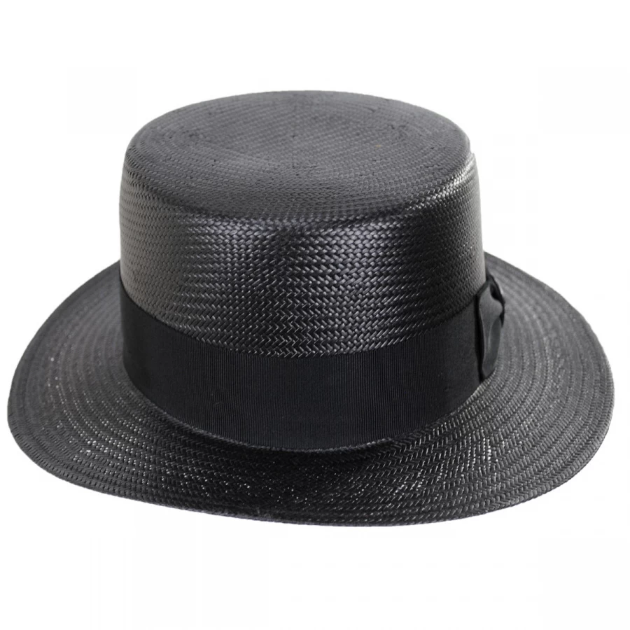 The Keeneland Shantung Straw Skimmer Hat is Stetson’s modern take on the classic skimmer, aka boater. The firm finish shantung straw provides clean straight lines and a lightweight body. Gather up 3 friends and start up a barbershop quartet in head to toe black, topping it off with this stylish straw hat.