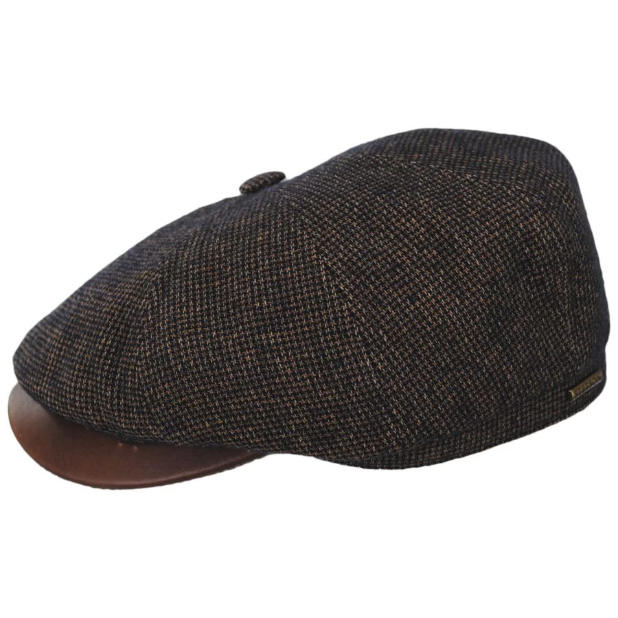 An elegant newsboy cap design is brought to you by Stetson! The Micro Houndstooth Leather Peak Newsboy Cap, made in Bulgaria, has a captivating micro houndstooth pattern, a grosgrain ribbon sweatband, leather bill, and 100% cotton lining, making it a modern and comfortable hat. If you need a newsboy cap, say hello to this timeless design.