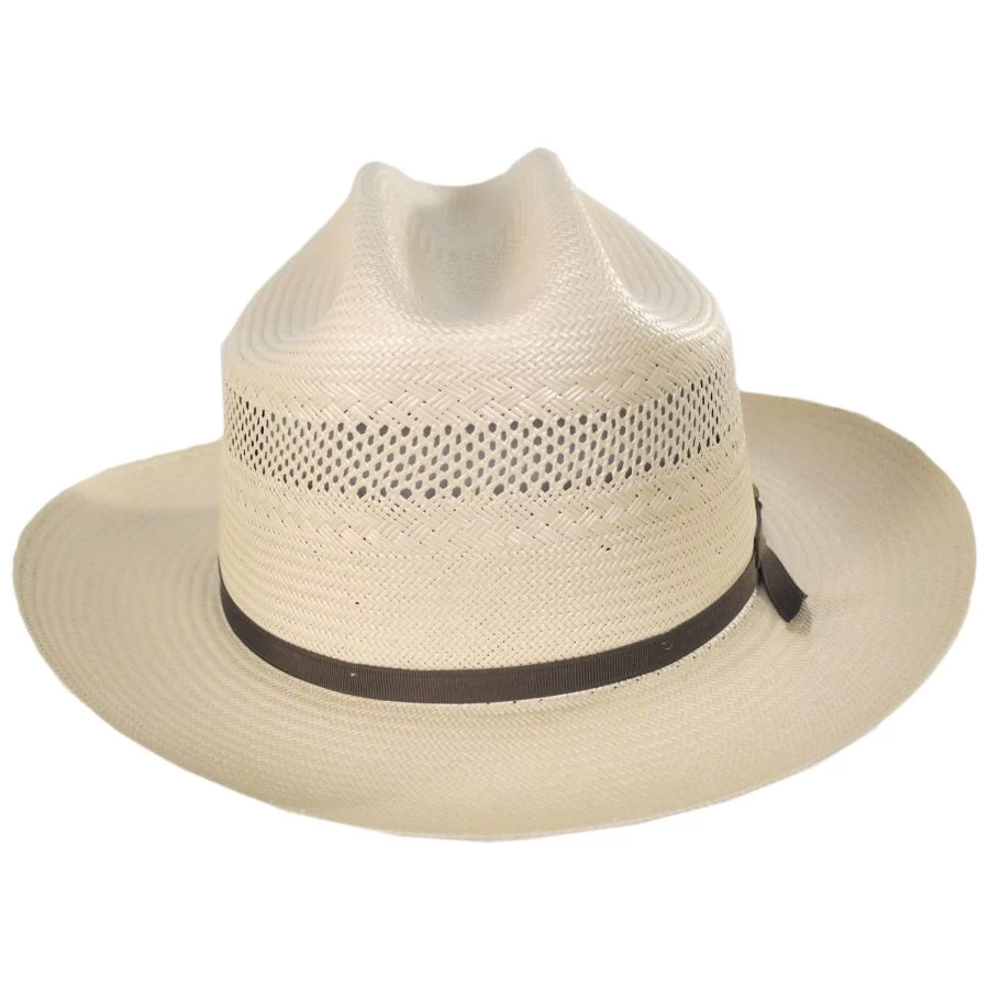 Stetson’s Open Road 10X Shantung Vented Straw Western Hat is made in the USA of 100% shantung straw with a classic western silhouette thanks to the cattleman crown and firm curved brim. Featuring a ventilated crown for added textural interest and for extra breathability, this Open Road is finished with a grosgrain ribbon hat band and John B. Stetson metallic accent pin. We adore this chic western hat!