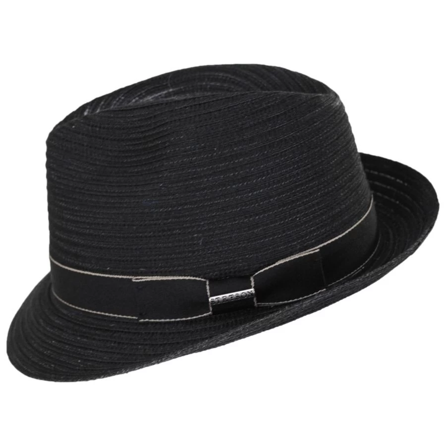 Relax in style with the Oreille Cotton Trilby Fedora Hat by Stetson. This well-made trilby features a semi-stiff body, sewn braid construction and a sleek hat band topped with an enchanting side bow. The interior is simple yet effective with a cotton twill sweatband and Stetson’s logo.