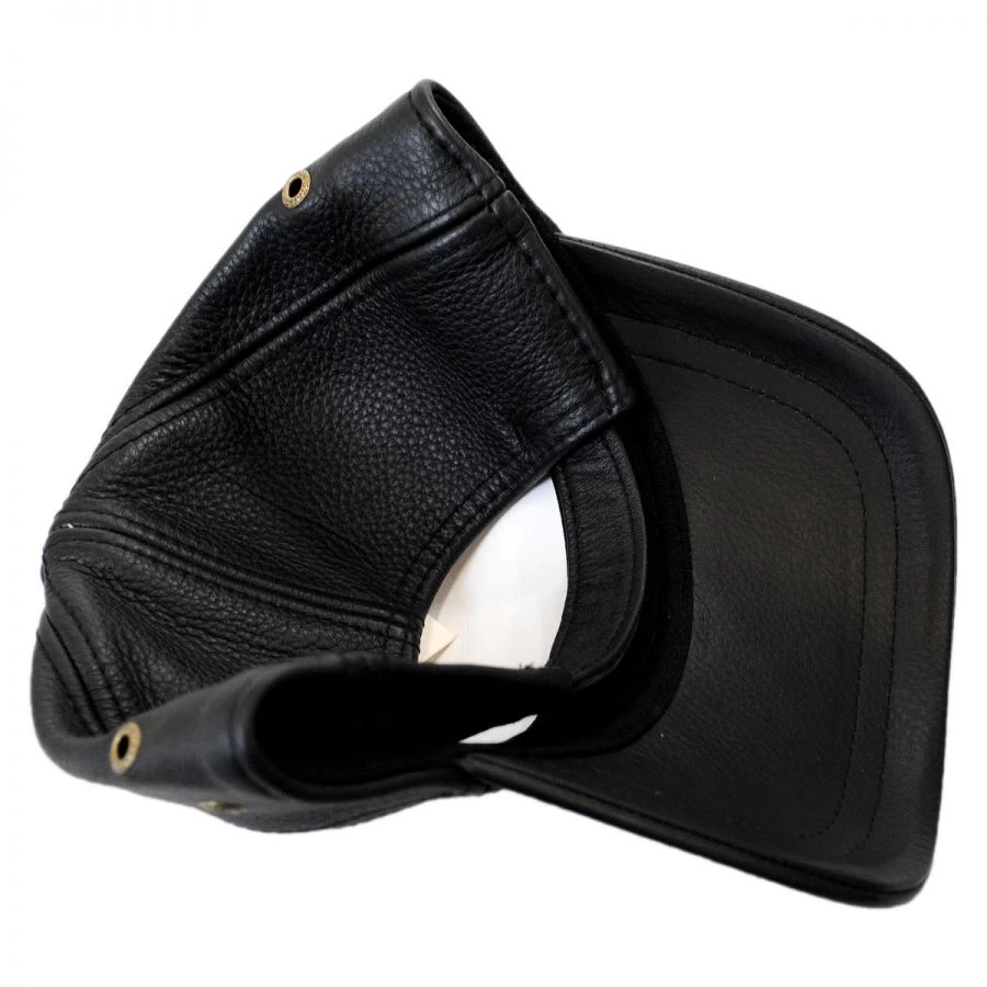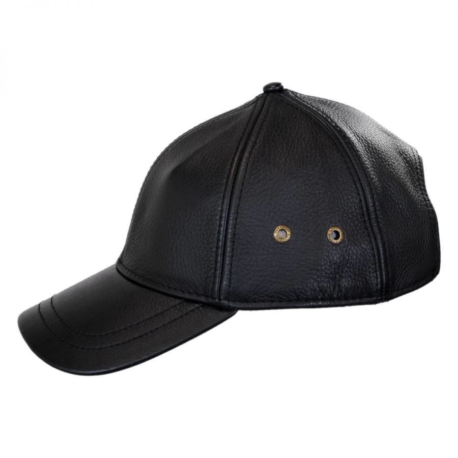 Smooth quality leather upgrades a classic adjustable baseball cap; the 6 panel baseball cap is trimmed in brass Stetson grommets with tonal stitch detailing on the peak.