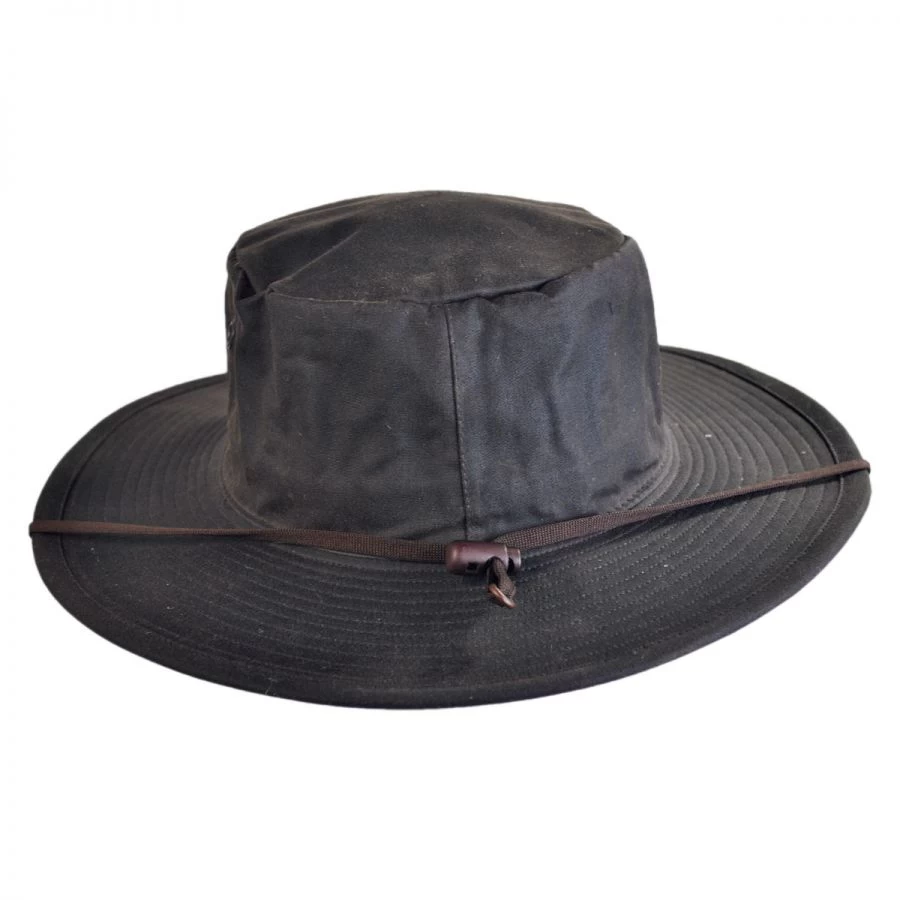 The Squatter Waxed Cotton Booney Hat features genuine Australian oilskin (waxed cotton) in a classic booney design with a crushable crown. Water repellent, the wide brim will keep you protected and the chin cord with toggle will ensure a secure fit. Vertical side ventilation grommets will help keep your head cool.