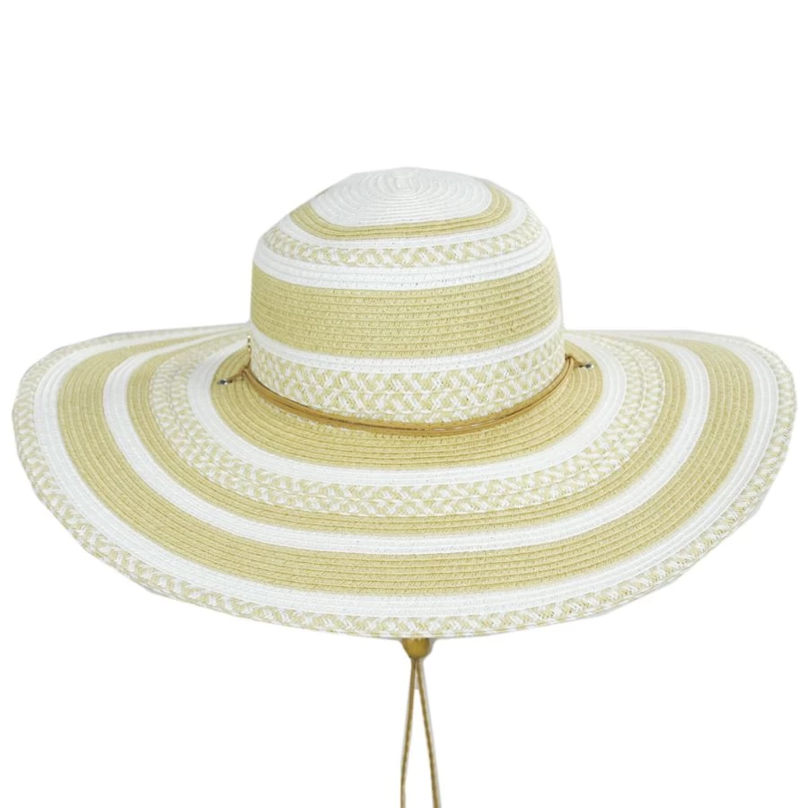 Go with a neutral color palette thanks to the Yuri Toyo Straw Striped Swinger Hat by Cappelli Straworld. The alternating neutral tones of the braided toyo straw will have you looking earthy and natural. The vegan leather hat band and chin cord is simple, blending effortlessly into the Yuri’s overall vibe.